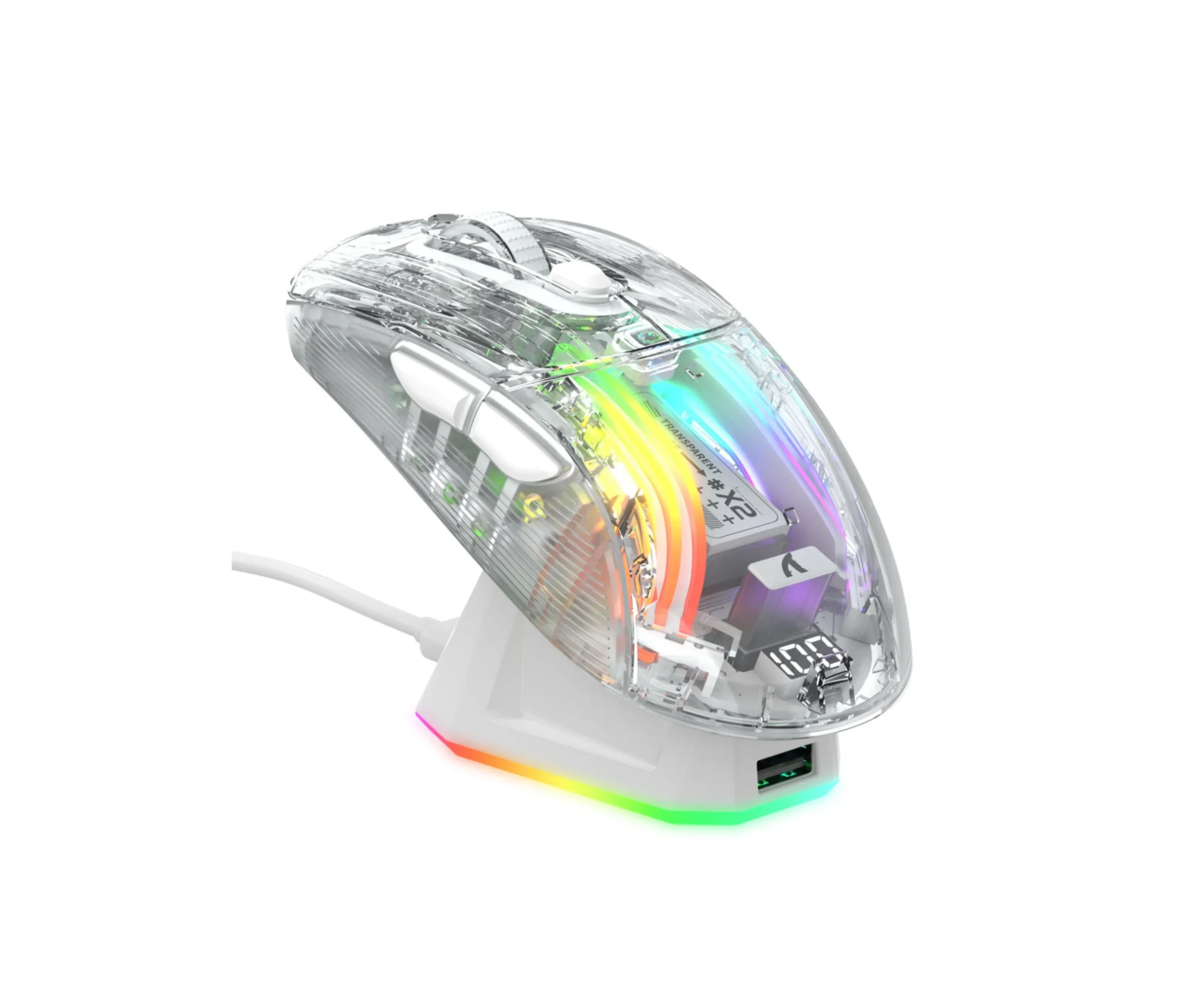 Unlike ordinary wireless computer mice, the transparent shell allows the X2 Pro’s RGB lighting effects to be better displayed, creating an unprecedented deep and immersive lighting experience. The surface of the shell is coated with an oleophobic coating to reduce fingerprints and other smudges without affecting light transmission.