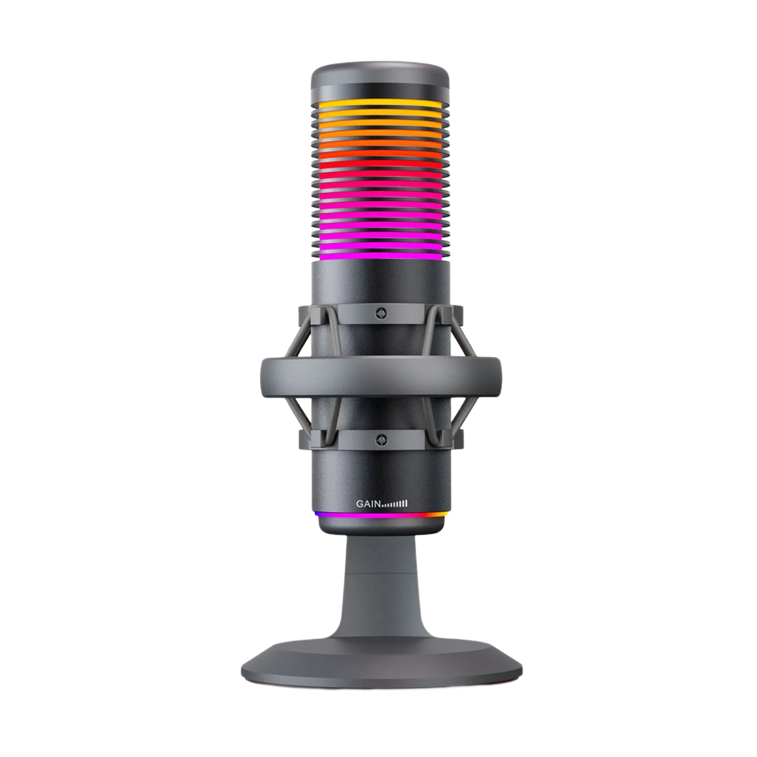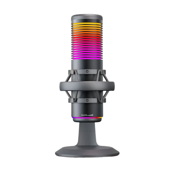 • USB Condenser Gaming Microphone with Shock Mount, Pop Filter, Gain Control, RGB Microphone for Gaming, Streaming, Podcasting