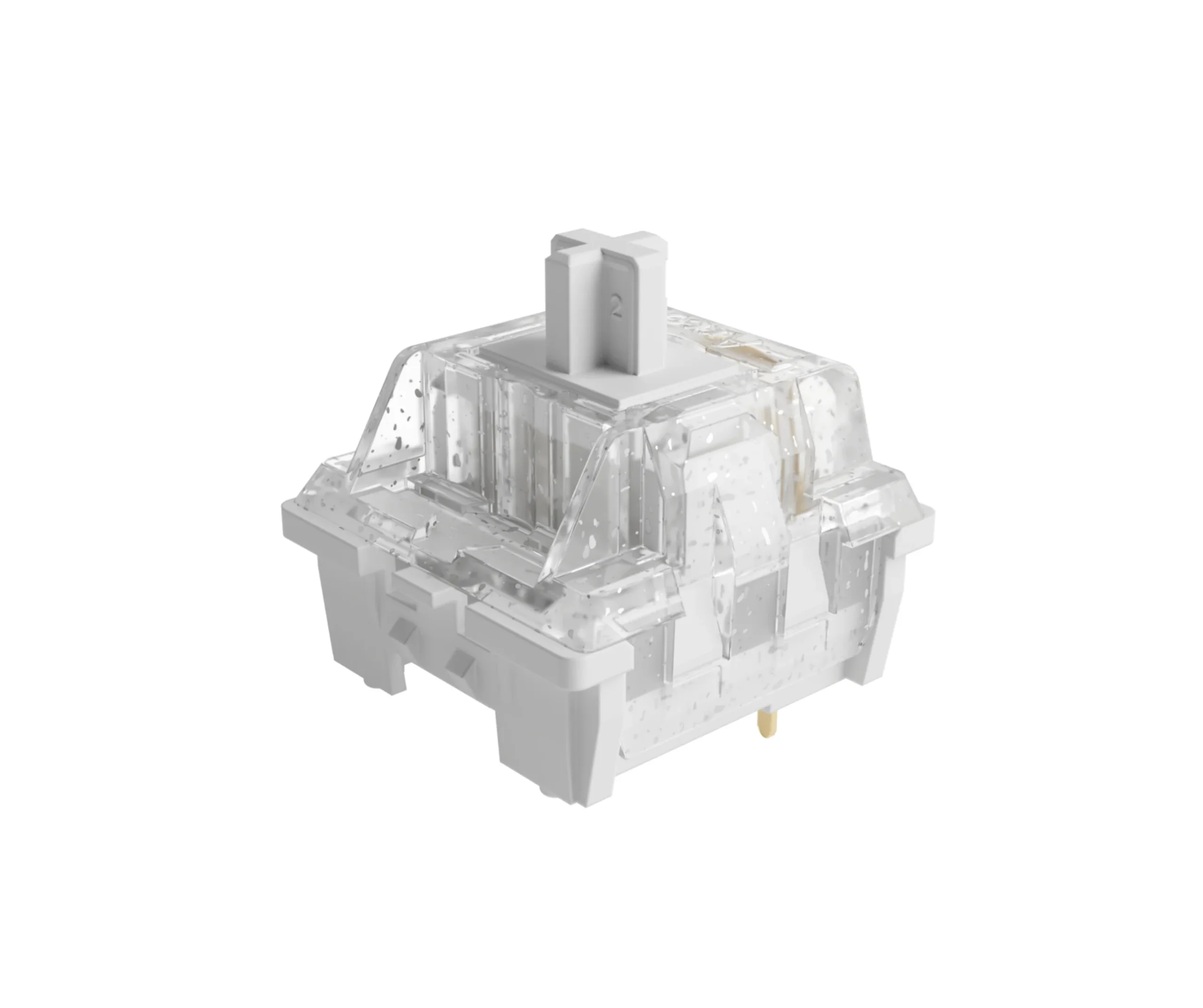 KTT White Kang V3 is a linear switch with 53g bottom out force with milky bottom housing and clear white polycabonate housing.